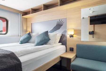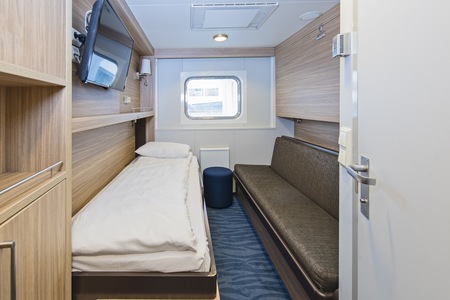 These comfortable, refurbished and spacious cabins for up to 2 people have a double bed, seating area, TV, and a hairdryer. They come with windows for natural light, but the view is limited.