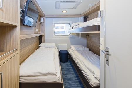 Polar Outside cabins feature all the same amenities as a Polar Inside – plus a porthole or window (full or limited view), allowing you to take in the scenery as you sail. They’re fitted with flexible bedding arrangements, compact furniture and all the basics for a comfortable journey.