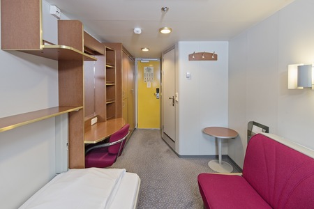 These comfortable, refurbished cabins for up to two people on the middle decks have two single beds, one chair and desk, and a hairdryer.