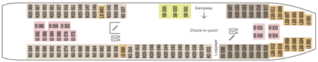 We ask guests embarking at ports where we dock for 15 minutes or less to drive onto the ship before checking in. A member of our car deck crew will hand you a transit card. Please show this card to reception staff during check-in. Check our sailing plan to see how long we stay in each port.