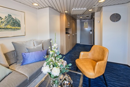 Expedition Suites are designed for those seeking space, style and indulgence. Sleeping up to 3 guests, all come with double bed, separate lounge area, premium furnishings and large windows. A quiet, spacious retreat designed for a truly comfortable and memorable voyage.