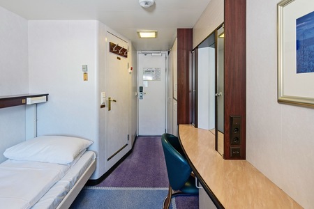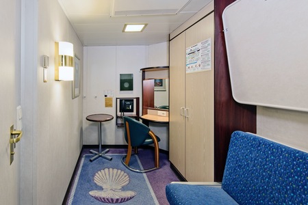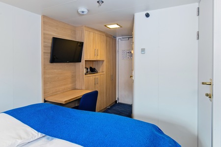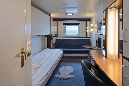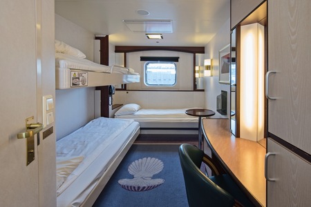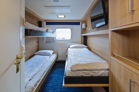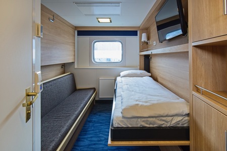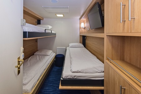 This comfortable standard inside cabin has bunk beds where the lower berth can be converted into a sofa. A cosy space ideal for a solo traveller on a budget.