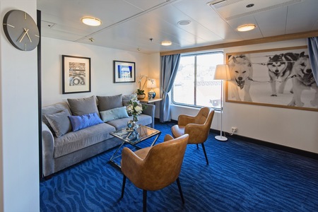 Expedition Suites are designed for those seeking space, style and indulgence. Sleeping up to 3 guests, all come with double bed, separate lounge area, premium furnishings and large windows. A quiet, spacious retreat designed for a truly comfortable and memorable voyage.