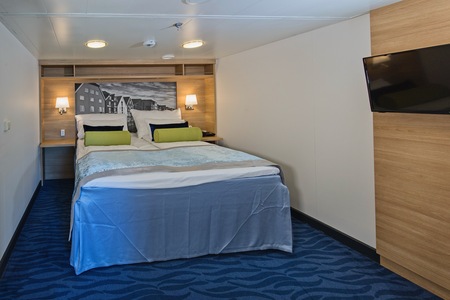 These comfortable, outside cabins for up to two people have a double bed. Cabins on deck 6 look out onto the mid-level walking deck, so the view may be obstructed.