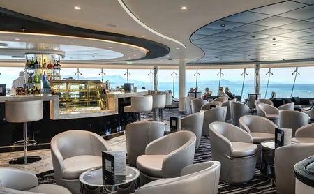 The Top Sail Lounge, located in the MSC Yacht Club area at the forefront of the ship, offers breathtaking views alongside exceptional food and service.