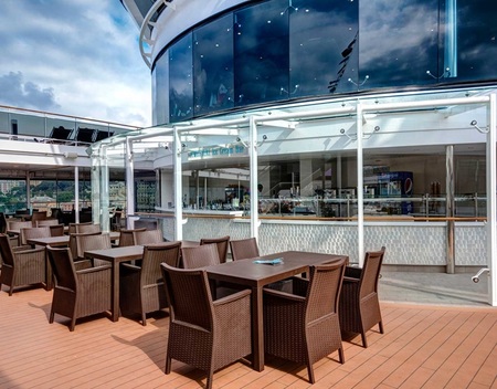 The MSC Yacht Club Grill & Bar is a dedicated outdoor terrace where guests can savour meals and drinks all day long.