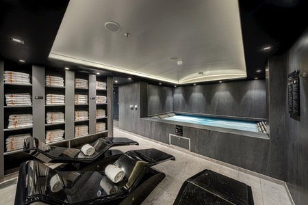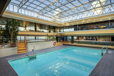 Private Lounge, swimming pool and gourmet restaurantThe image is representative only; the size, layout and furniture may vary (within the same cabin category).