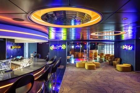 Broadcasting live throughout the ship, our TV Studio and radio suite air live games, quizzes, talent contests and other fun content. An excellent selection of cocktails, beer, wine and soft drinks are available to get you ready for your big performance.