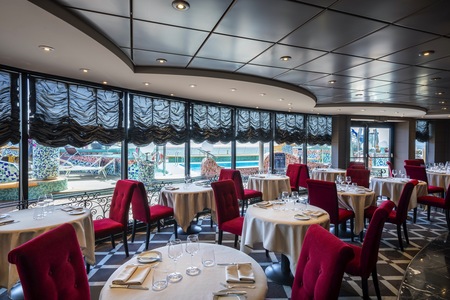 Located on deck 7 with seating for 108 guests, dining reservations can be made with the Maître d’ or guests Dining Room waiters.