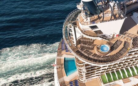 Connected directly to the top deck by two panoramic lifts, the Sunset Beach Pool offers plenty of space in the sun, as well as breathtaking views out over the back of the ship and across the water.