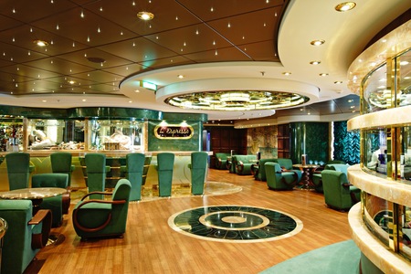 The ship's Piano and Martini Bar, seats 108 and is located on deck 7.