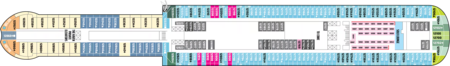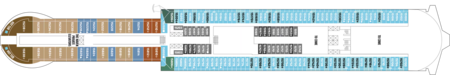 Private keycard access complex comprised of staterooms specifically designed and priced for the solo traveller. Featuring a full-size bed and separate area for your bathroom in almost 95 square feet of living space. Includes access to the private Studio Lounge. No single supplement required.