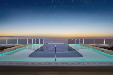 On The Haven Sundeck, everything feels open-the sky above, the surrounding ocean, and the vast space around you. Two separate sundecks allow families of all ages to gather together or adults to enjoy a quieter pace in their own distinct area. Drift away in the infinity pool - poised over the back of the ship as if by magic, and follow it up with a glass of bubbly in the hot tub. For true head-to-toe luxury, step into the large outdoor sauna and feel the heat envelop you, then gaze at the ocean from the glass-walled cold room and pause to take in the view.