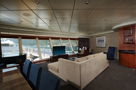 Bring the whole gang because this Suite sleeps up to six guests. It features a king-size bed separated for added privacy, double sofa bed, and some also have a double murphy bed to accommodate two more. Everyone can hang out in the sitting area, and there is a luxury bath with shower. Butler and concierge included. Please note: This stateroom has floor to ceiling windows, no balcony.