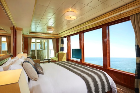 Up to three guests can enjoy the fabulous views from the aft-facing balcony of these Penthouses that include queen-size bedding plus a single sofa-bed, a sitting area, and some even have a living and dining area. Most include butler and concierge service.