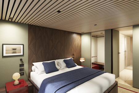 These stylish Club Balcony Suites are located at the back of the ship and offer the ideal retreat for two guests. They include two lower beds that convert to a queen plus a balcony to marvel at the ever-changing views. Some can connect to other staterooms, perfect when travelling with family or friends.