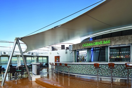 On Norwegian Bliss and Norwegian Joy, cigarettes, electronic cigarettes, cigars, pipe smoking and vapour smoking devices are permitted at Spice H2O, starboard side.