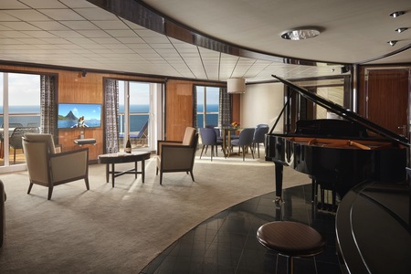 With a large balcony to admire the amazing views and room for up to six guests, these modern Penthouses are the perfect way to cruise in style. Most Include a separate bedroom with king-size bed, additional bedding for up to four more, plus a luxury bath, walk-in closet and living and dining room. All with the indulgence of butler and concierge service. (See each category for specific details)