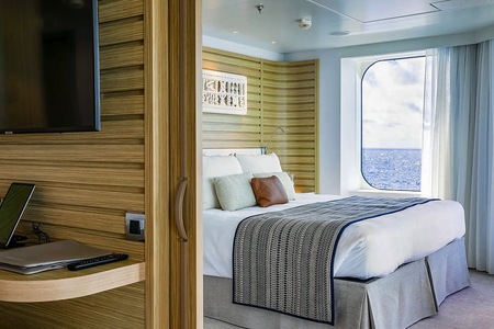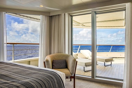 Le Jacques-Cartier is equipped with 92 staterooms and suites designed to enable passengers to enjoy moments of tranquil calm and exotic escape. Featuring a balcony or terrace together with large sliding glass doors, they each open out towards the horizon. The combination of refined decoration and comfort they offer simply invites relaxation.