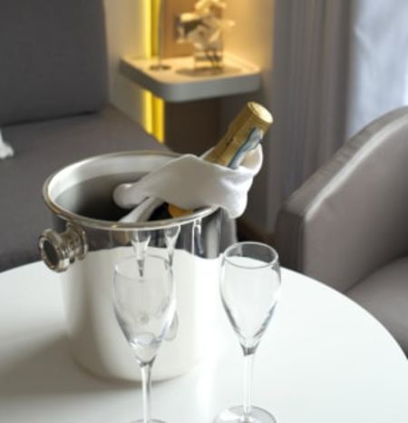 Whether you wish to have breakfast in the privacy of your cabin, savour a snack in the middle of the day or enjoy your dinner in an intimate setting, our Room Service is available for you. Have a gourmet interlude and treat yourself from a varied menu at any time of day or night *.