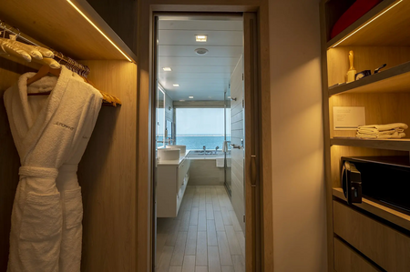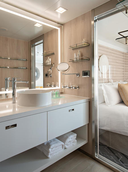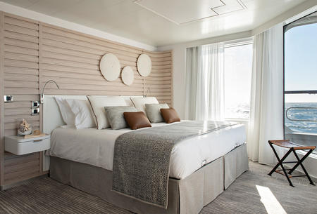 The 92 staterooms and suites of Le Bougainville are the very embodiment of the PONANT spirit and approach: to offer a combination of finesse, cosy intimacy and well-being. Equipped with private balconies, they benefit from soft and gentle light and radiance throughout the day. You'll be delighted to have the elegant ambiance of your cabin to return to after a trip out in a Zodiac® inflatable or a refined restaurant dinner.