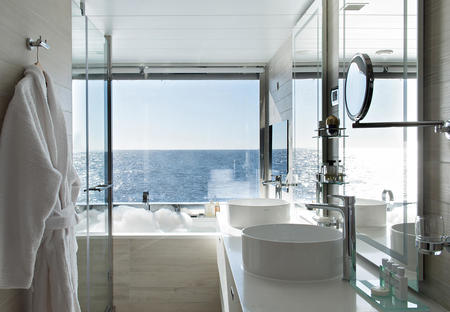 Welcoming and spacious common areas, refined open-to-the-sea design, sleek exterior lines, a marina to make access to the ship's zodiac inflatables easier, hi-tech equipment, an outdoor pool, an underwater lounge… Le Bougainville represents the new generation of ships designed to combine discovery and exploration with luxury, even in the planet's most remote and isolated regions.