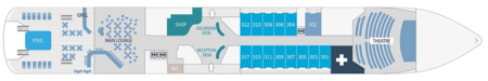 The Theatre* is the most unique meeting space on board. It's the largest space on the ship and regularly accommodates all the passengers. It plays host to shows and entertainment as well as conferences from our experts, naturalist guides and guests of honours. The Theatre makes every cruise unique and enriching thanks to its constant and very accessible events.
