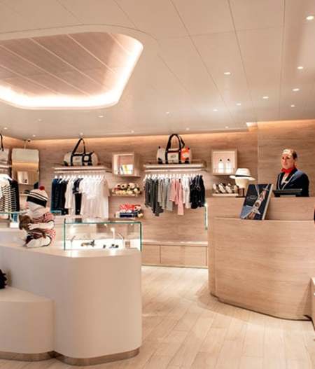 On board all our ships, a shop is open during sailing. It offers a selection of presents and souvenirs: clothing, jewellery, beauty products, postcards and accessories.