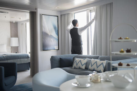 Whether you wish to have breakfast in the privacy of your stateroom, savour a snack in the middle of the day or enjoy your dinner in an intimate setting, our Room Service is available for you. Have a gourmet interlude and treat yourself from a varied menu at any time of day or night*.