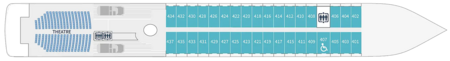 The Theatre* is the most unique meeting space on board. It's the largest space on the ship and regularly accommodates all the passengers. It plays host to shows and entertainment as well as conferences from our experts, naturalist guides and guests of honours. The Theatre makes every cruise unique and enriching thanks to its constant and very accessible events.