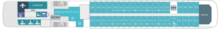 Distributed across decks 3 to 6, the Le Lyrial's 122 staterooms and suites embody the unique atmosphere so dear to PONANT: a subtle combination of luxury, intimacy and serene well-being. Enjoy views of the sea in a setting conducive to escape and getting away from it all in each and everyone of the staterooms.