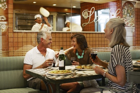 Named for our former Master Chef, Alfredo Marzi and voted "Best Pizza at Sea" by USA TODAY, this charming sit-down venue offers an enticing menu of freshly prepared individual-size pizzas along with beer and wines by the glass. The open kitchen design allows you to watch as the chefs create pizza by hand and serve them straight out of the oven.