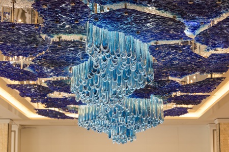 The wondrous colours outside Seven Seas Explorer® are no match for the vivid cobalt-blue glass installation on the ceiling of our elegant Compass Rose, a perfect setting for breakfast and dinner.