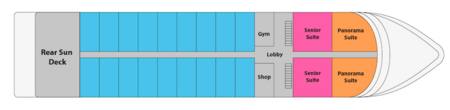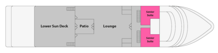 Senior Suites are located on both the Upper and Top Decks. The Upper Deck Suites are 40 square meters and the Top deck suites are 34 square meters.