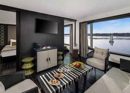 One of the largest ships on the Nile, with 52 cabins and suites, the five-star ship is managed by the renowned Swiss hospitality company, Mövenpick, and has been designed with a low draft in order to navigate the full length of the Nile in Egypt.