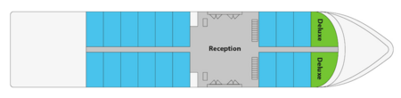 These cabins are 20 square meters, with a large picture window offering magnificent river views, with a panel that can be opened. All cabins feature individually-controlled air conditioning, hairdryer, personal safe, fridge, TV and the convenience of tea & coffee making facilities. The beds are hotel-style and can be configured as a double or two twins, with the fine Egyptian cotton sheets, and an evening turn-down service. Clever design allows for all the wood-panelled bathrooms to have a bath with a fixed shower above, along with complimentary toiletries. A laundry service is also available.