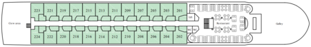 We include mobility information regarding lifts between decks on each ship under the deck plan section of the page. You may wish to view all of our ships before booking.