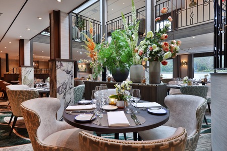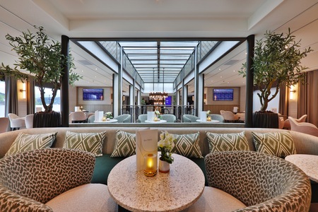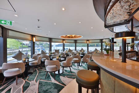 Home to the reception area and the social hub of the ship, the bar. Here, you and your fellow explorers can gather over drinks to discuss the highlights of the day after dinner, accompanied by the soothing tones of the ship's pianist. During the day, you can sink into its sumptuously soft armchairs and sofas with a freshly made cup of tea and watch the ever-changing landscapes and charming towns and villages drift by.