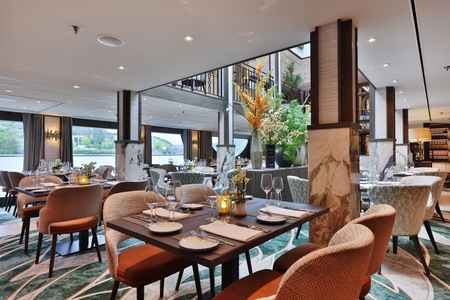 The ship's restaurant is located on the Ruby Deck. Experience exceptional service from our friendly and attentive, English-speaking crew while you enjoy a variety of first-class cuisine. Pair seasonal menus with a glass of wine from our carefully curated wine list, including a selection of regional favourites.