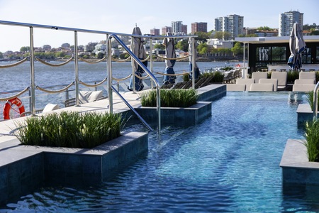 Our open-air Sun Deck is the place for relaxation. It's home to a refreshing splash pool and a selection of comfortable chairs and sun loungers - both in and out of the shade. Here, you're sure to find the perfect spot to crack open that book you've been meaning to read - perfectly paired with a cool glass of wine or beer from the sky bar, of course.