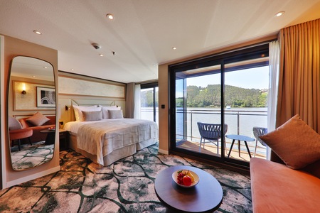 At 24 square metres, our Balcony Suites are the largest cabins on MS Riviera Rose. The floor-to-ceiling glass doors slide away to extend your already spacious living space onto your private balcony, complete with comfortable outdoor seating - the perfect place to sit and watch the riverbanks glide by.