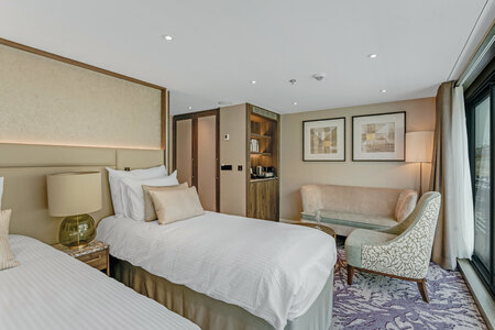 Designed for the ultimate in space and comfort, the Grand Suites are our biggest-ever cabins at an impressive 32 square metres. Relax in a separate living space, which features a sofa, chair and table, or enjoy a siesta on your king-sized bed.