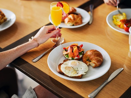 The continental breakfast items on the room service menu are complimentary, but you can also upgrade with fried eggs or an omelette if you want something a little heartier. You can even make brunch boozy with mimosas or the Ultimate Bloody Mary. If you’re ordering lunch or dinner, choose from flavourful finger foods like crispy chicken tenders, a melt-in-your-mouth cheese toastie, hot dogs your way or the much-loved Royal Burger – it’s 225 g of prime Wagyu beef topped with crispy bacon and aged cheddar on a toasted bun. The creamy classic tomato soup, grilled quesadilla and fried chicken wings are also guest favourites.