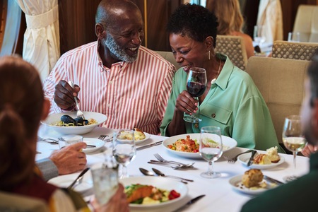 Many of the dishes on the Main Dining Room’s menu rotate each night, which means you could go an entire week without ever repeating a course. Every meal here begins with something delicious from the starters section of the menu – like savoury duck terrine layered with apricot chutney on toasted sourdough bread, a flaky Vidalia onion tart baked with whipped eggs, cream and smoked bacon, or spiced aubergine and Kalamata olive tartare prepared with red pepper hummus and served on crispy garlic bread. Then, choose from international entrees like Moroccan-spiced ahi tuna served over mint couscous, sautéed spinach and tequila peppers with a cool yoghurt vinaigrette. Or mojo-marinated bone-in pork loin paired with sweet potatoes, broccoli and a cumin-citrus reduction. Dessert is also worth getting excited about, with options like sweet cream-soaked tres leches, home-style carrot cake with cream cheese icing and a light and fluffy Grand Marnier soufflé.