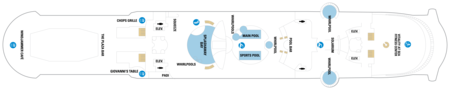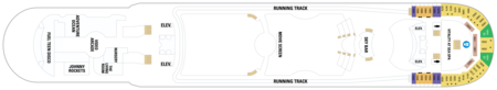 Onboard all interior public spaces are smoke free*. Smoking is not permitted in any dining venue, theater, bar, lounge, hallway, elevator, and jogging track.