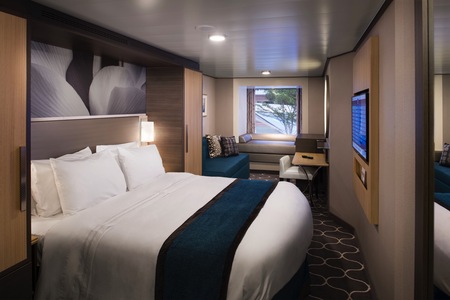 Promenade Staterooms have bowed windows overlooking the Royal Promenade and standard room facilities.