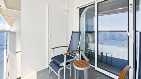 These staterooms offer you a private balcony with chairs and a table where you can sit back and relax.
