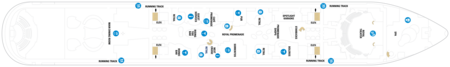 Onboard all interior public spaces are smoke free*. Smoking is not permitted in any dining venue, theater, bar, lounge, hallway, elevator, and jogging track.