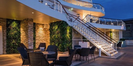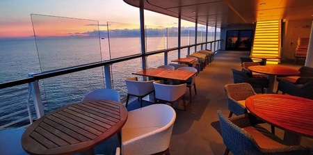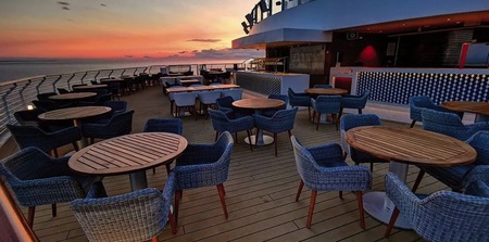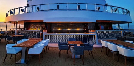 This elegant ‘secret’ garden area is the perfect setting to enjoy the fresh air any time of the day. Expect it to be especially inviting as you sail away, when you can watch the sun set into the ocean while sipping a cocktail.