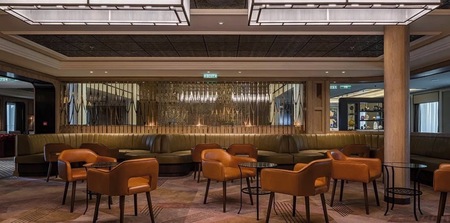 Spanning the full width of the lounge is an impressive bar area, where you can choose from the ship’s full range of drinks, or enjoy waiter service from your comfy seat.
